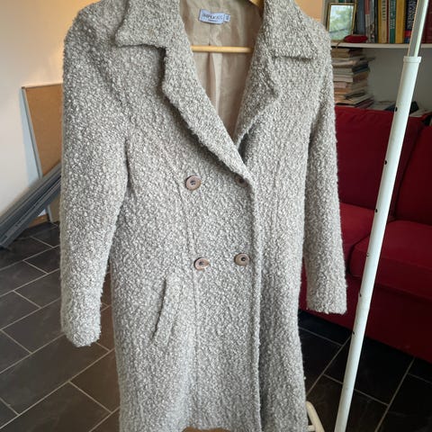 Kordfløyel på krage, i front og nederst på ermene som kan brettes opp hvis man ønsker.