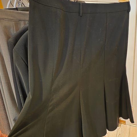 A-linje miaxi- midi skjørt i svart farge, størrelse 46. Skjørtet har en klassisk A-linje fasong som gir et tidløst og elegant utseende. Det er laget i et materiale som gir et glatt og stilfullt preg. Passer godt til både hverdagsbruk office og mer formelle anledninger.