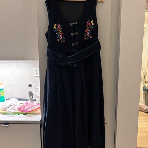 Fin mørkeblå festdrakt. Det står størrelse 176 inni, men den er mer som en S/M.