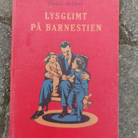 Lysglimt På Barnestien bok i hardcover med rød forside. Boken har et illustrert omslag med en familie på forsiden. Ideell for de som er interessert i klassisk litteratur.