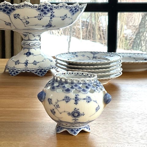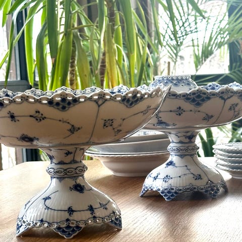 Royal Copenhagen nydeligste stettfat modell 634, 28cm diam, halvblonde fra 1800-tallet kr 7500.