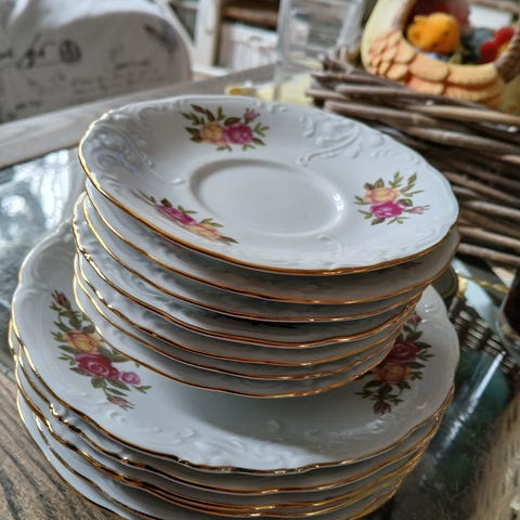 Har kun skål og asjett, mangler kopp
