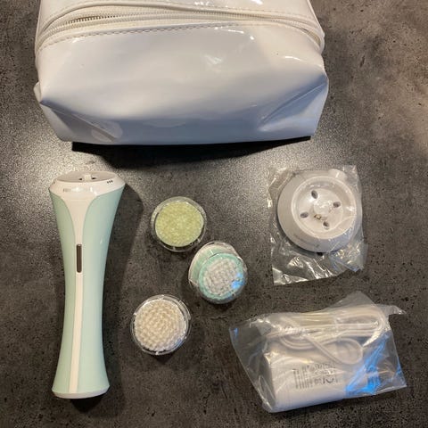 Elektrisk ansiktsbørste inkl. tre børstehoder og en oppbevaringsboks. Det er to hastighetsinstilliger. Egnet for daglig hudpleie for å rense og eksfoliere huden.
