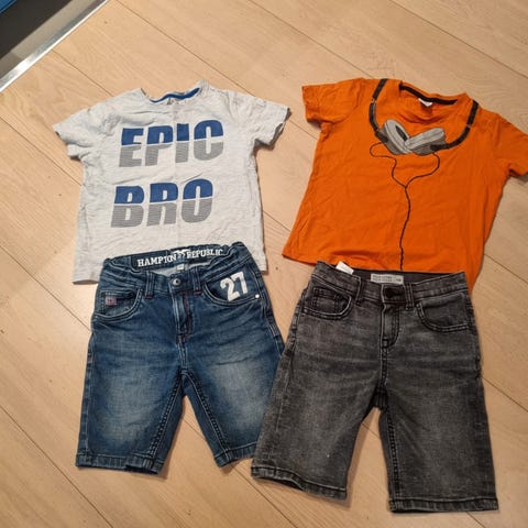 Utebukse, penbukse, t-skjorte og shorts størrelse 122/128