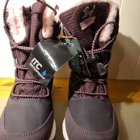 Leaf Siljan vintersko med borrelås, Mørkeblå med rosa detaljer. Str 32. Veldig gode og varme vintersko som er vanntette. Medfølger ullsåler.