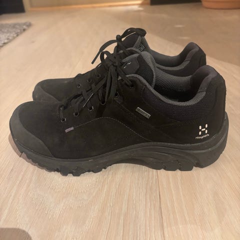 Haglöfs Gore-Tex sko i størrelse 38. Skoene er svarte og laget av materialer som gir god beskyttelse mot vær og vind. Egnet for utendørs aktiviteter.