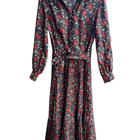 Hel lengde 105 cm, brystvidde 96 cm, livvidde 71 cm, hoftevidde 130 cm. NB! Dette er en liten M med smalt liv, lurt å sjekke målene dine 😊 Liten reparasjon foran på skjørtet (se bilde). Kjolen er lagt ned, men enkelt å legge opp hvis du ønsker den kortere. Generelt god stand 😊