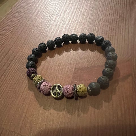 Laget med sorte lavaperler og klare glassperler. Størrelse small men med fleksibelt designet for å passe ulike håndleddstørrelser. Lavaperlene gir en unik tekstur, mens glassperlene tilfører glans.