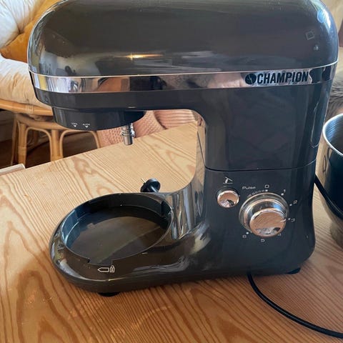 Selger en Kitchenmaster kjøkkenmaskin. Følger med utstyret på bildet.