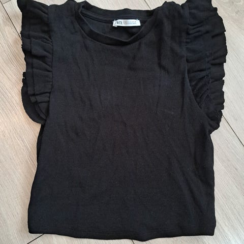 Søt topp fra Zara, svart, størrelse S. Volanger på skuldrene.