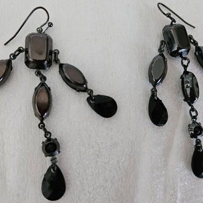 Øredobber med sorte steiner og sølvfarget strassteiner.