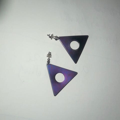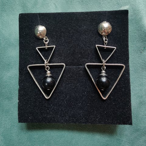 Trekantet øredobber i svart metall. Disse minimalistiske øredobbene har en geometrisk trekantform.