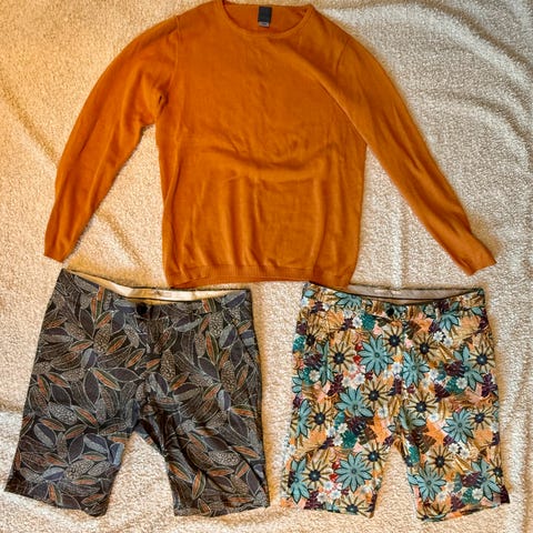 Skjortepakke til rørslig kar. "Modellen" på bilde er 187cm, 105kg. Alle skjortene er XL eller tilsvarende i reell størrelse. Selges helst samlet for god pris. Eventuelt ikke så god pris for enkeltartikler.