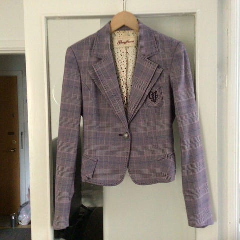 Nydelig GUESS blazer i lilla for dame, størrelse S. Laget av et behagelig materiale, ideell for både formelle og uformelle anledninger. Klassisk design med knapper foran.