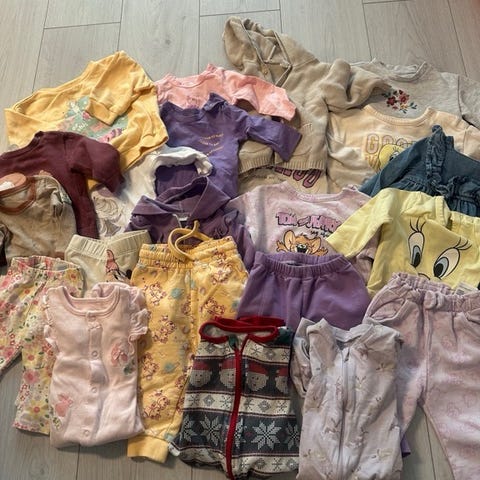 Selger en nydelig klespakke ned merkeklær i størrelse 3mnd. Pent brukt, men jeg fant flekker på et par av plaggene (se bilder). Inneholder flere sett, pysjer og nydeligste sparkedress fra absorba. Merker som Hummel, Absorba, Hust and Claire, Mexx, petite bateau, gullkorn og newbie.