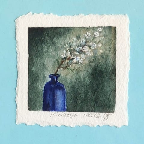 Selger original akvarell miniatyr kunstverk som ble laget av meg. Billedkunstner Olga Gansen inspirert av enkel natur og tidløs estetikk.