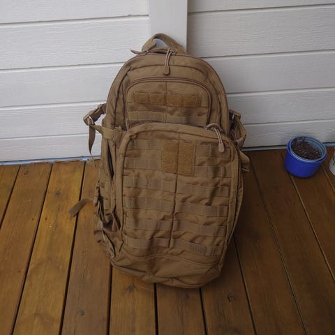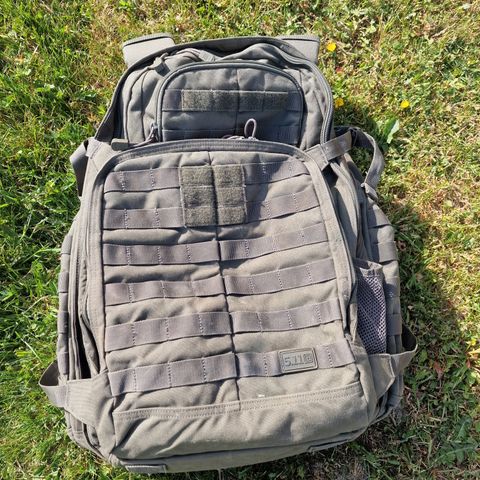 5.11 Tactical ryggsekk i svart. Laget av slitesterkt materiale, ideell for friluftsliv og hverdagsbruk. Justerbare stropper og flere lommer for enkel organisering av utstyr.