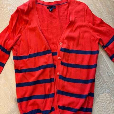 Tommy Hilfiger cardigan i størrelse M for dame. Fargen er blå, og materialet er 100% bomull. Perfekt for hverdagsbruk eller som et lett lag på kjøligere dager.