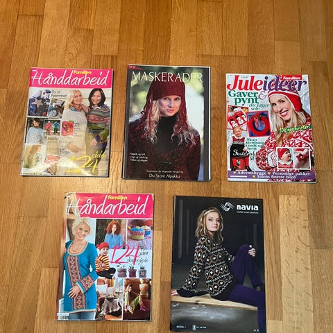 Se bildene for detaljer. Oppskriftshefter fra House of yarn, Dalegarn, Gustav og Berta o.l.