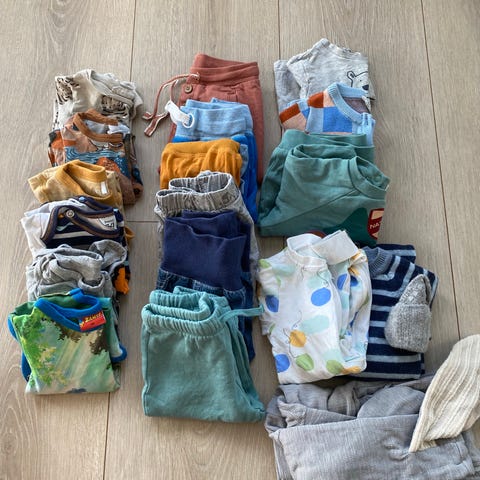 Selger stor klespakke med klær i ulike merker: Polarn O. Pyret, H&M, cubus, Kapphal, Reflex m.m. Noen klær er også i sett.