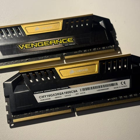 Corsair Vengeance RAM med 4GB kapasitet og DDR3 teknologi. Designet for å gi høy ytelse i datamaskiner som krever rask og stabil minnehåndtering. Passer godt for spill- og arbeidsstasjoner.