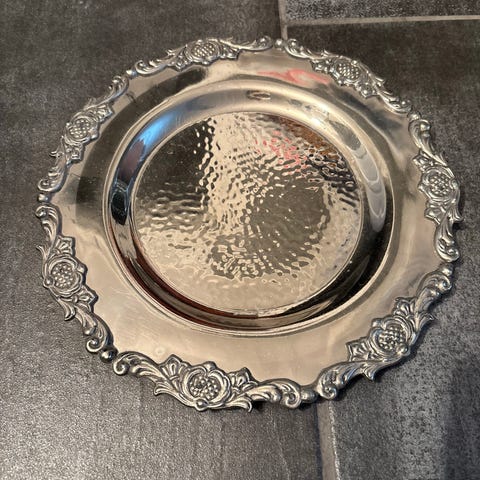 Dekorativ metalltallerken kjent som "Portland Ware Metal Plate".