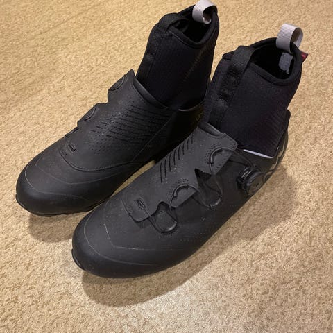 Northwave extreme pro 3 i svart farge til salgs. Disse skoene er kjøpt i fjor, brukt på ca 10 turer og fremstår som i fin stand. Den høyre skoen har en liten skramme på innsiden og er i str 44. Dette har ingen praktisk betydning for bruk. Den venstre er i str. 43,