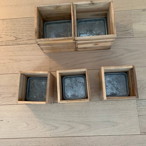 Nydelig patina på disse fine trekassene. Selges samlet