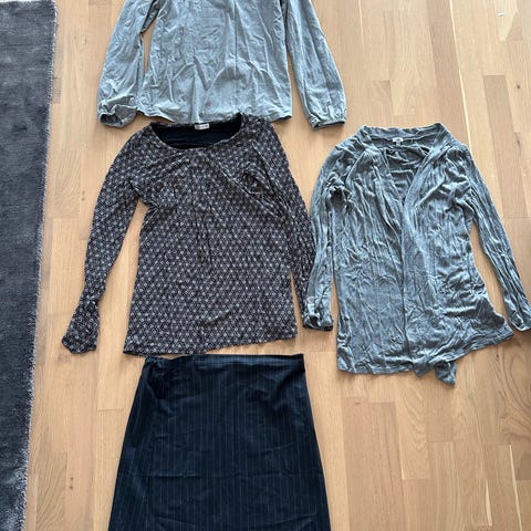 Lite brukt kortermet bluse til gravid i 100% bomull. Jeg har klippet bort lappen med størrelsen men tror det er medium (riktignok litt stor i str, så denne kan man ha ut helesvangerskapet). Fargen er lys blå med et mønster av små fugler. Passer godt til hverdagsbruk og kan kombineres med både jeans og skjørt. Ermer kan brettes opp, se bilder.
