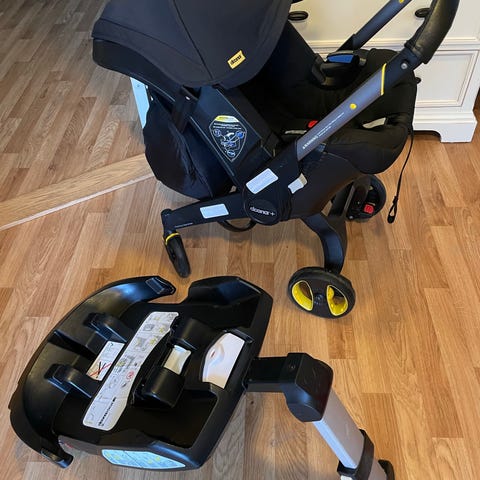 Selger vårt Doona bilsete med hjul. Superpraktisk når du skal raskt ut og inn av bilen. Kan brukes fra nyfødt (følger med nyfødtinnlegg) og opp til 13kg. Setet er i god stand med normal slitasje etter bruk, ingen skader eller mangler.