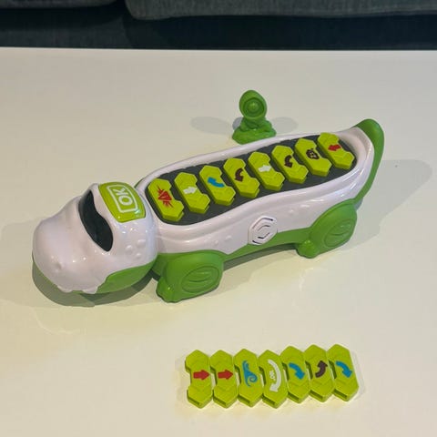 Krokodille som kjører rundt etter hvordan barnet legger inn brikker. Pent brukt.
