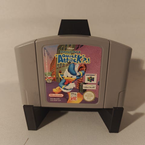 Nintendo 64 Quack Attack spillkassett for bruk med Nintendo 64-konsollen. Spillkassetten har et fargerikt design med karakterer kjent fra populære tegneserier. Egnet for spillere som ønsker å oppleve klassiske Nintendo 64-spill. Produktet er laget av slitesterkt plastmateriale og er kompatibelt med alle Nintendo 64-enheter.