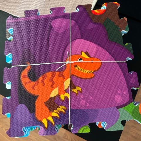 Puslematte i foam med dinosaur motiv. Matten måler ca 92x92 cm ferdig puslet. Puslematten gir et mykt underlag for barna når de leker, og kan lett rengjøres med en fuktig klut. Helt trygg å bruke og godkjent etter europeisk standard. Passer fra 10 mnd+