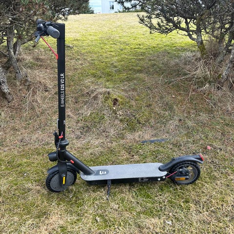 Elektrisk sparkesykkel E-Wheels E2S V2. PRO Long Range. Lader inkludert. Maksimal hastighet 30 km/t(Ulovlig).På én batterilading kan scooteren kjøre ca. 30 km. Nye hjulene er oppblåst med luft for en komfortabel tur Alt fungerer som det skal.