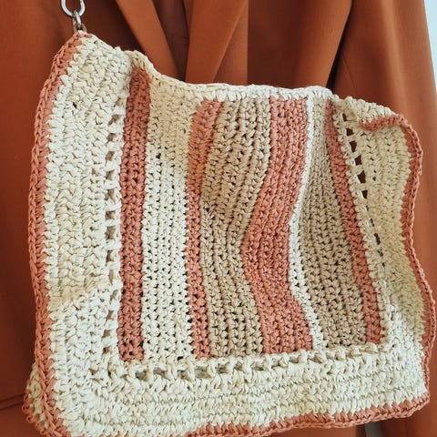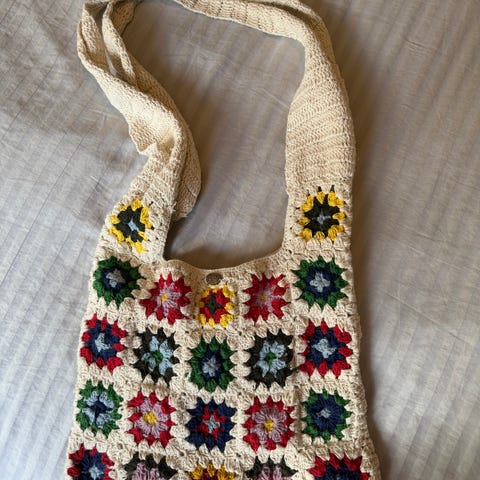 Zara heklet veske i flerfarget design. Både cross-body og 2 små håndtak. 24x29 cm.