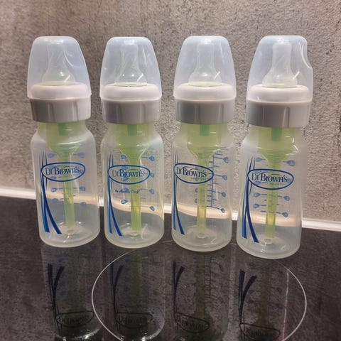 Dr. Brown's/MAM babyflasker sett inkluderer flere flasker i plast. De er vasket, sterilisert og kommer i ulike størrelser. Flaskene er designet for å redusere kolikk og har et spesielt ventilasjonssystem. Ideell for spedbarn og småbarn.