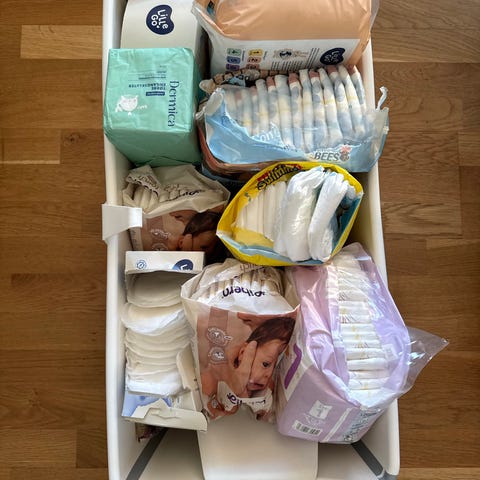 Med UBBI Diaper Caddy får du plass til det du trenger når du skal skifte bleier. Det er plass til 8 bleier, våtservietter, og har et eget rom for kremer og salver. Gummihåndtak og føtter gjør at den er enkel å ha med når du skal ut av huset.