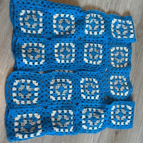 Veldig søtt håndlaget heklet miniskjørt laget av bestemor ruter. Skjørtet er i god stand og er trolig laget av en blandingsgarn av akryl og ull. Veldig godt og varmt.