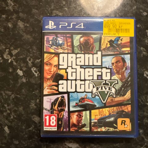 Rockstar Games Grand Theft Auto V til Playstation 4 selges. Det er brukt, men virker bra.