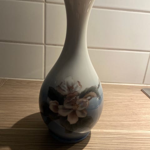 Et fantastisk flott service fra eldre dager. Det ble arvet for 40 år siden og har kun stått i glasskap hos meg, Før den tid har det blitt tatt godt vare på av tidligere eiere, og fremstår svært pent behandlet. Stemplet blå/ grønn anno 1923. Se info og bildevisning. Serviset består av 52 deler: 12 stk kaffekopper, 12 stk kaffekoppskål,er, 12 stk tefat/ tallerkner 16,5 cm, Fløtemugge H: 11cm og sukkekopp m/ lokk H: 13cm. Høy krukke 10 cm, 8 cm diam., Syltetøykrukke 7,5 cm og 11 cm diam., Fat bladformet L: 24cm Bredde: 18cm, Firkantet fat L: 23 cm Bredde målt på smaleste midten 15 cm, 2 stk Lange ovale fat L: 37 cm Bredde 14 cm dybde 4,5 cm, Vase H: 18cm, Mugge H: 18 cm, Stettfat H 18cm og 21 cm i diam. kaffekanne H : 26,5 cm målt m/ lokk. Tannpirker krukke, 3 stk små kuvertskåler. . Stettfatet har en liten knest på ene siden , se bildevisning. Serviset selges samlet Frakt betales av selger dersom sendes