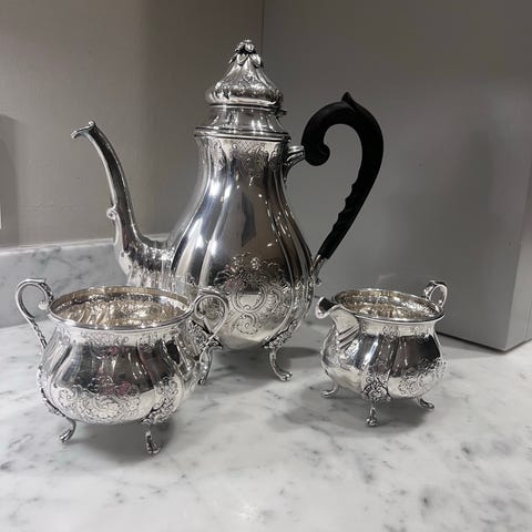 Gi hjemmet ditt et snev av klassisk eleganse med denne utsøkte vintage bordlighteren. Denne vakre lighteren, sannsynligvis sølvbelagt, utstråler en tidløs sjarm med sine detaljerte utskjæringer og solide utførelse.