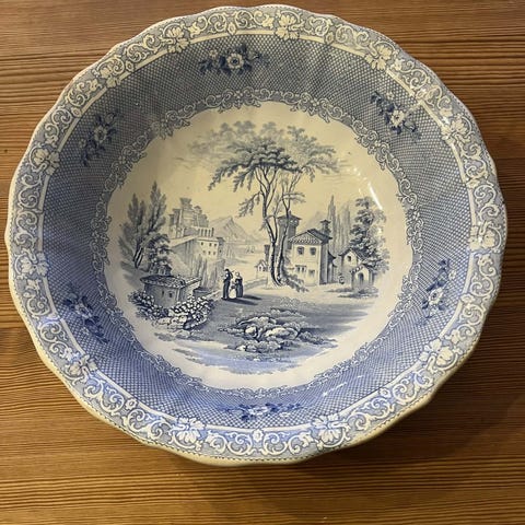 Nydelig fat fra W. H. Grindley, Staffordshire (England) i serien Scenes After Constable.