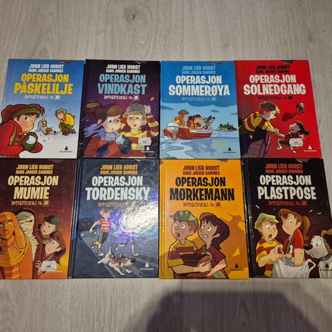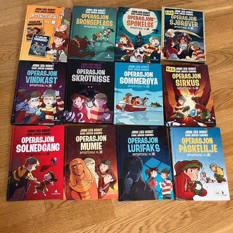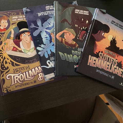 Pent brukte bøker.