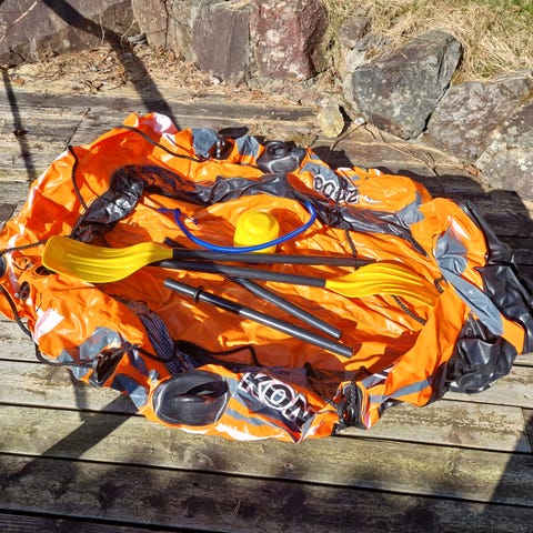 Det er en liten hull i den oppblåsbare bunnen som er reparert.