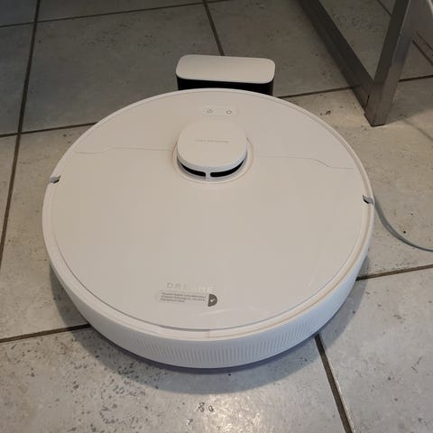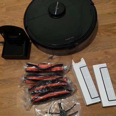 Roborock S5 Max robotstøvsuger i sort farge. Denne modellen er designet for effektiv rengjøring med avanserte navigasjonsfunksjoner. Den er utstyrt med en stor vanntank og kan moppe og støvsuge samtidig. Passer for ulike gulvtyper og har justerbare innstillinger for optimal rengjøring.