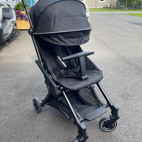 Praktisk og nett Libelle reisetrille fra Cybex. Svært intuitiv og enkel når det kommer til å pakke opp og pakke sammen. Passer i hattehylle på fly, kan også i de fleste fly trilles ned midtgangen. og er ellers liten og lett å ha i bagasjerommet. Ryggen kan justeres noe, men kan ikke legges helt flatt. Solskjerm og «setebelte». Praktisk kurv under vognsete. Bremsefunksjon.