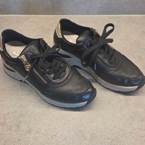 Svarte sneakers med gulldetaljer fra Rieker i str. 42.