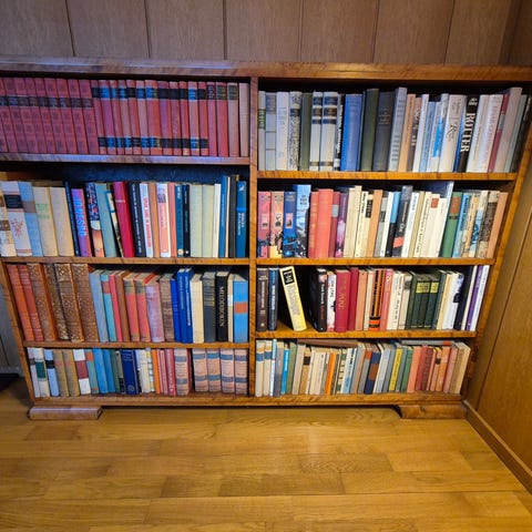 Denne bokhyllen utstråler en gammeldags sjarm som vil være et tidløst tillegg til hjemmeinnredningen.