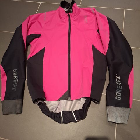 Gore Bike Wear sykkeljakke for herre i svart med rosa detaljer. Jakken har en glidelås foran og refleksdetaljer på ermene for økt synlighet. Laget av pustende materiale som er ideelt for sykkelturer.