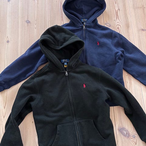Selger en Ralph Lauren Polo hettejakke i størrelse 8-10 år (M). Hoodien er blå og har en praktisk glidelås foran. Laget for komfort og stil, egnet for barn i størrelse 8-10 år.